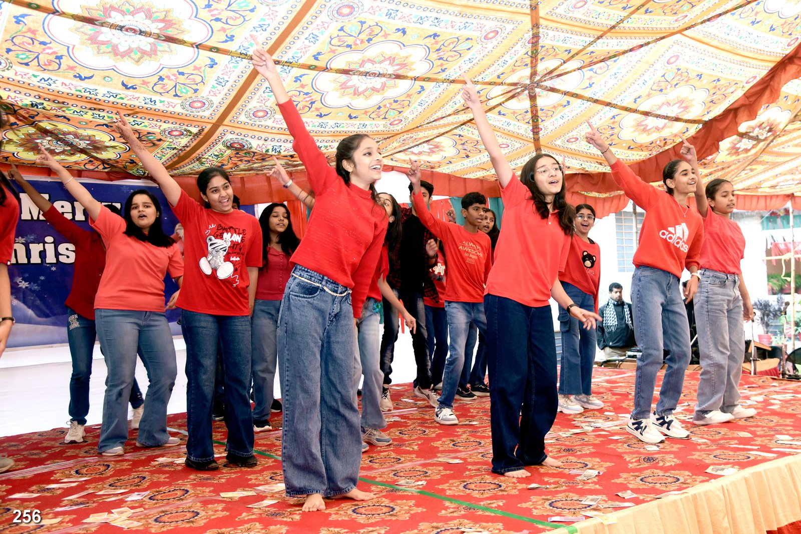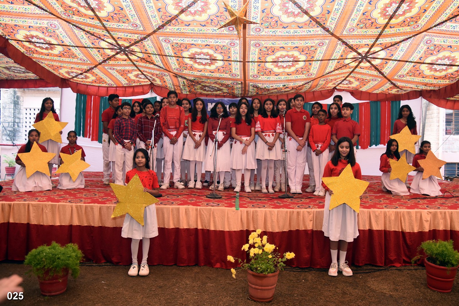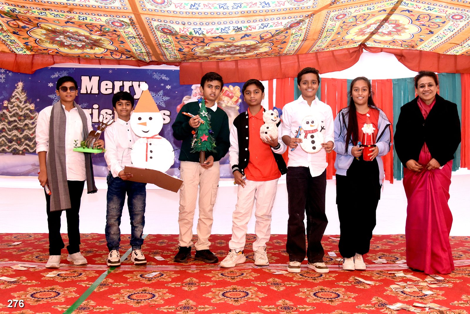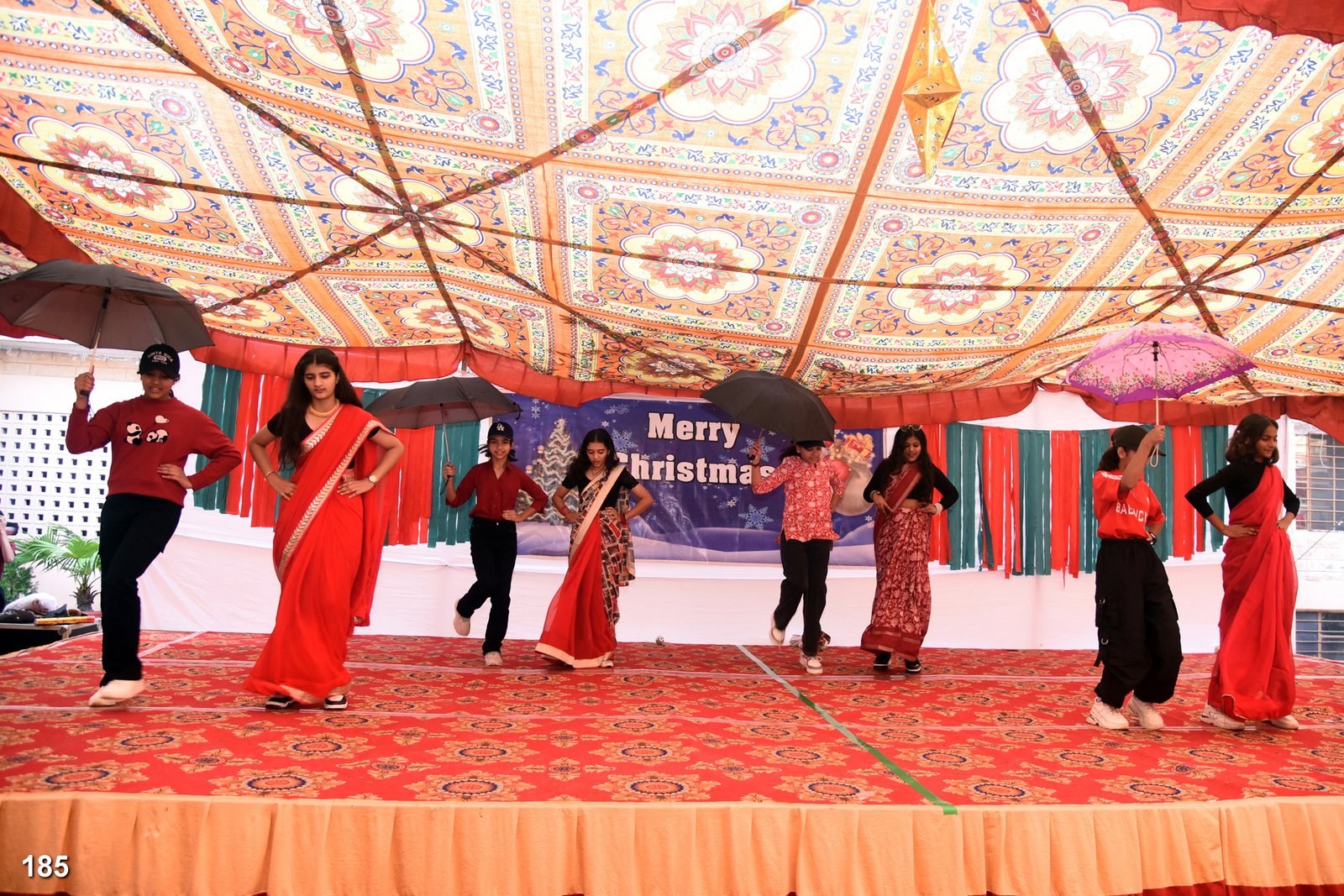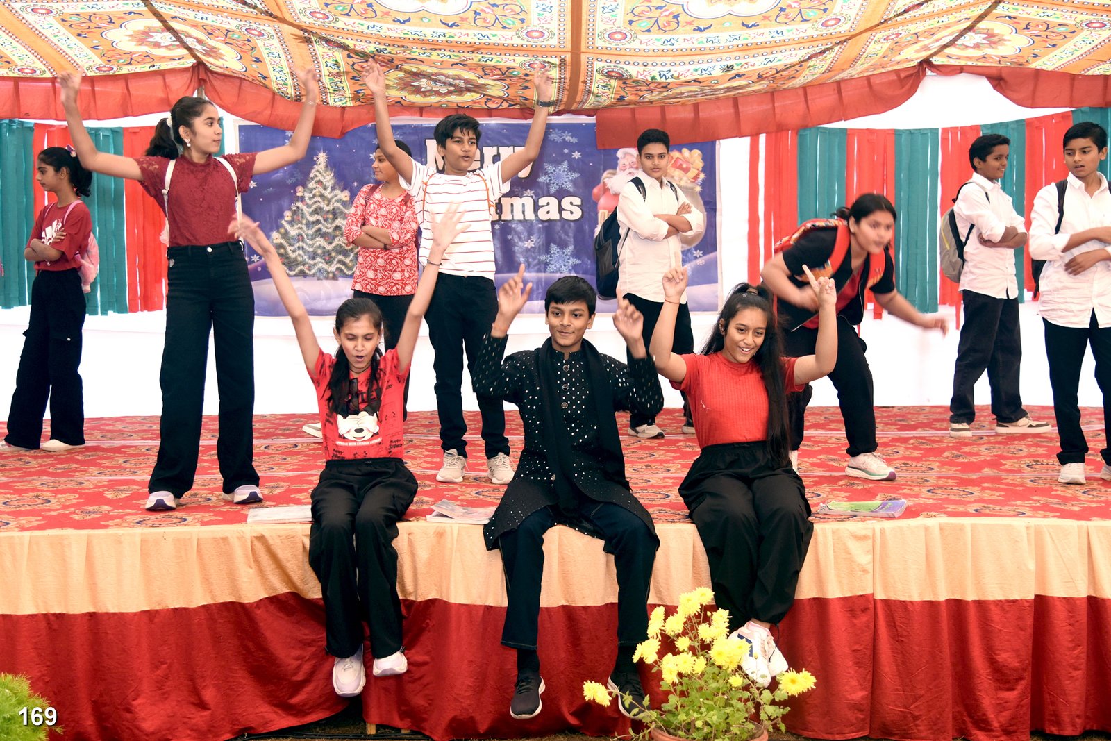 The celebrations commenced with a solemn prayer, invoking peace and gratitude. Soon after, the arrival of Santa Claus filled the air with excitement and delight, spreading smiles among the students. Santa distributed sweets and candies to the students of classes VI, VII, and VIII, adding to the festive joy. The melodious Christmas carols presented by the school choir further enhanced the spirit of the occasion. To highlight the true meaning of Christmas, a captivating tableau portraying the Nativity Scene was presented, leaving a deep impression on the audience. This was followed by a series of vibrant dance performances that showcased the talent and enthusiasm of the students celebrating the festival with great zeal and joy.