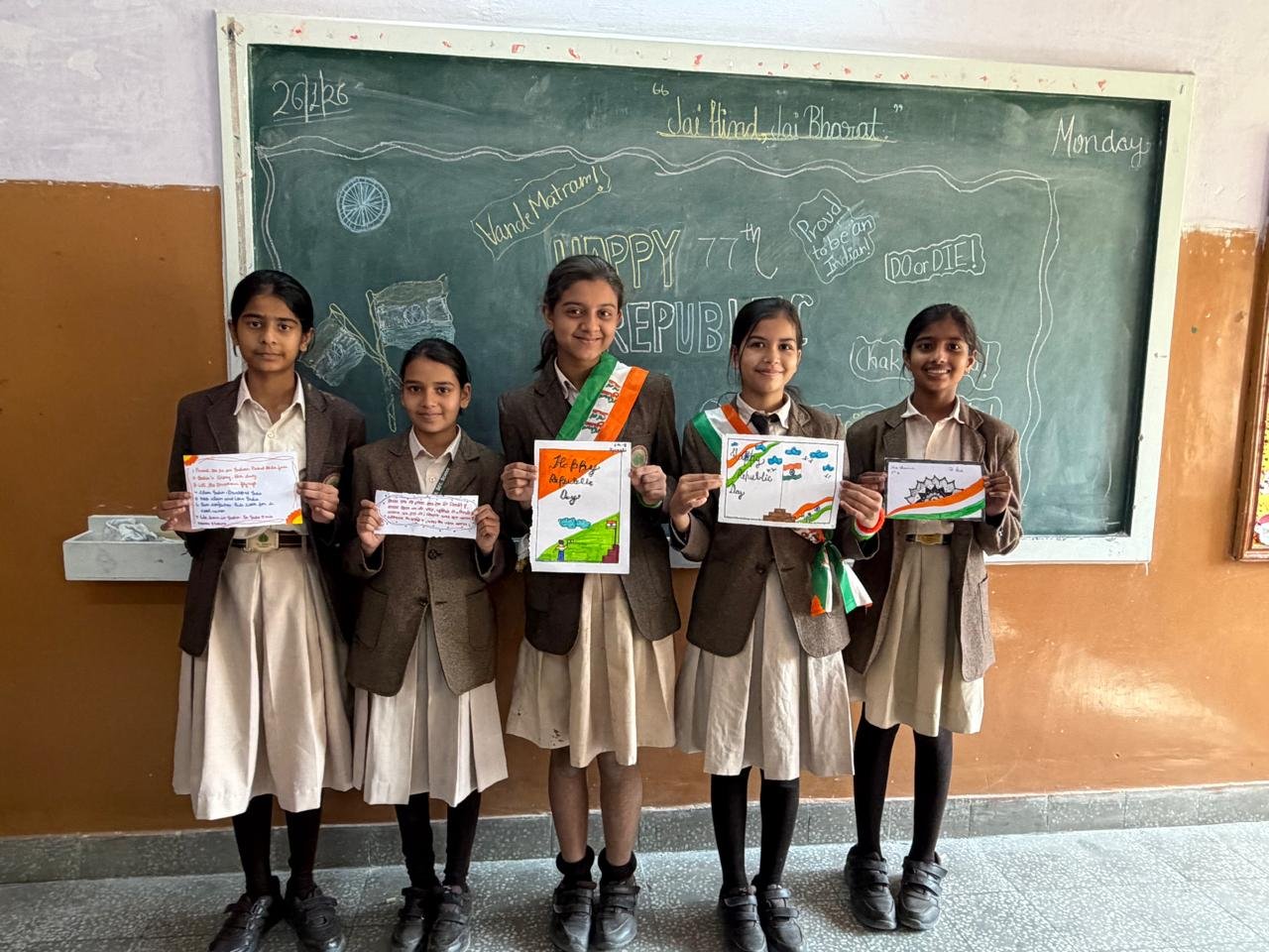 On January 26, 2026 our school hosted a vibrant Republic Day celebration to mark the 77th anniversary of India’s Constitution. The event commenced with the flag hosting, followed by stirring redemption of the national anthem. Students participated in different events like they were dressed as freedom fighters, prepared speeches, wrote slogans, poems, etc. depicting the constitutional values . As young citizens , this day reminds us of our duties to study well, respect our laws, and contribute to a better India. It inspires us to be responsible, united, and proud of our heritage.