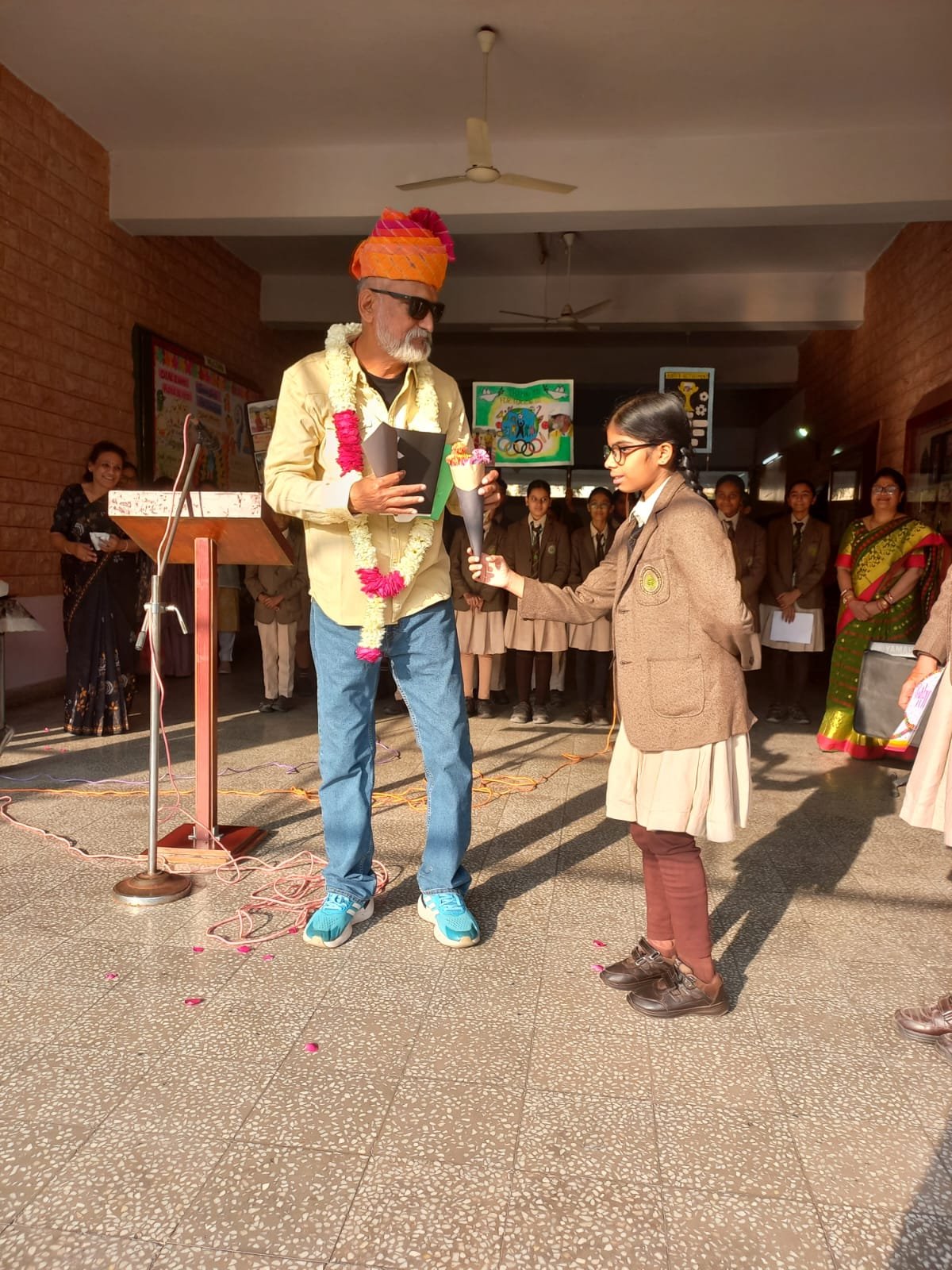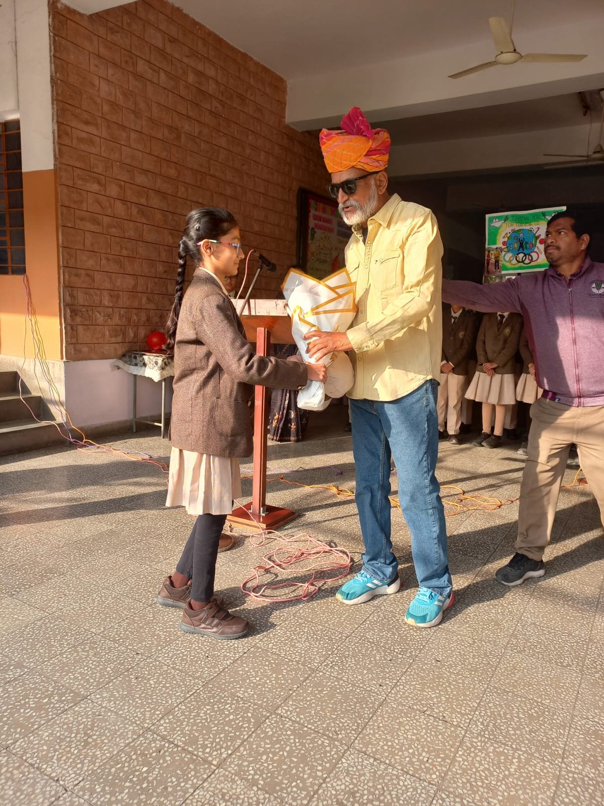 The assembly began with the morning prayer, followed by students from different classes, who shared their experiences and expressed gratitude They spoke about how he instilled in them the values of teamwork, perseverance, sportsmanship, and confidence. .A heartfelt tribute was delivered by Mrs Rekha Vyas , a fellow colleague of the retiring Sir. She spoke about his dedication, discipline, and unwavering commitment towards the school. The school honored Vijay Sir with a bouquet and a token of appreciation as a mark of respect and gratitude. In his farewell speech, he thanked the management, staff, and students and encouraged everyone to stay active and determined in life.