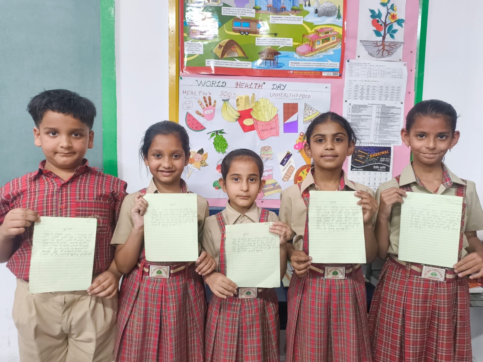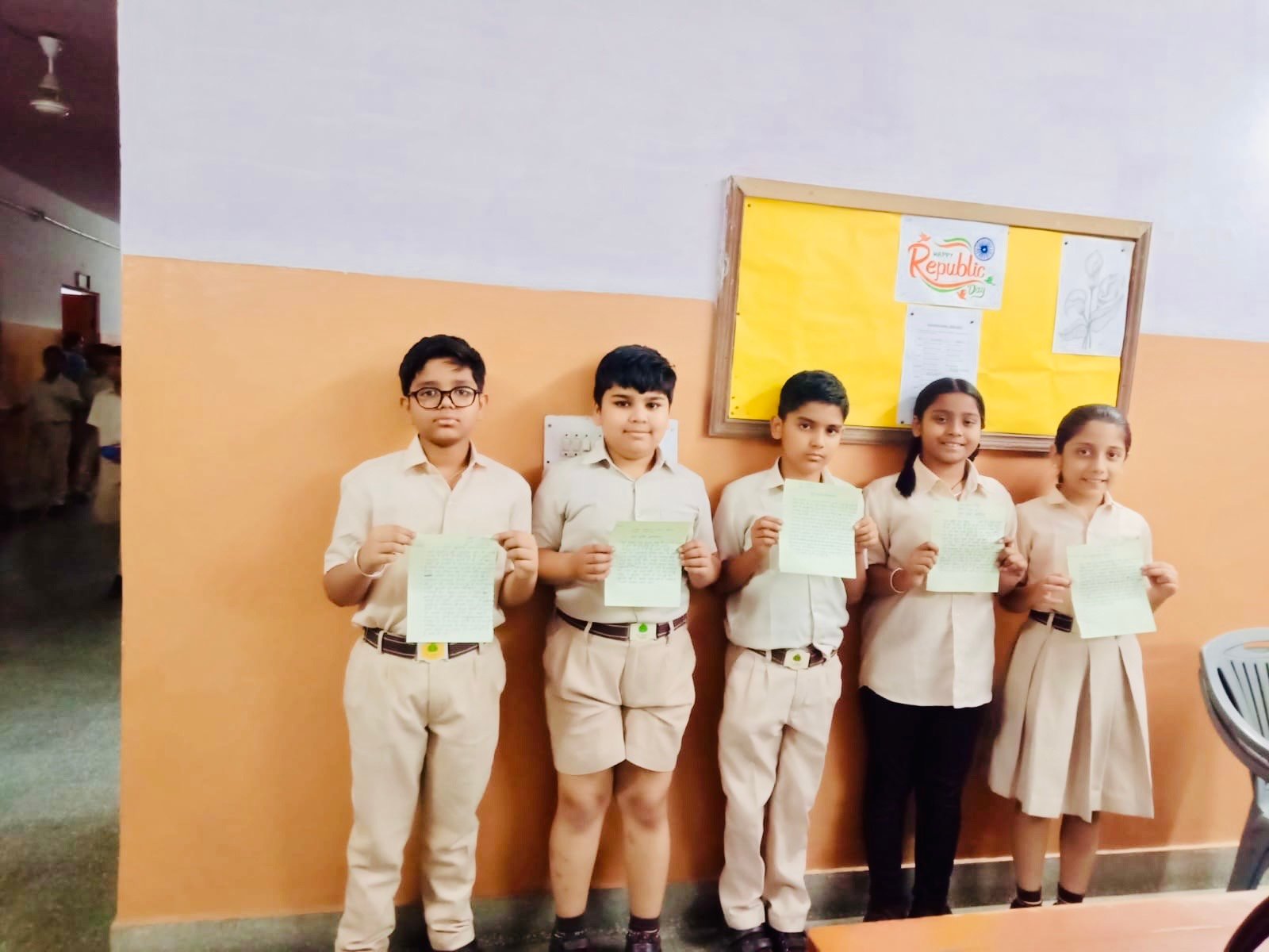 हमारे विद्यालय में हिंदी सुलेख प्रतियोगिता का आयोजन _10 अप्रैल 2026_कक्षा प्रथम से कक्षा पंचम तक के विद्यार्थियों के लिए किया गया। इस प्रतियोगिता में छात्रों ने उत्सुकता से भाग लिया। इस प्रतियोगिता में लेखन क्षमता का परीक्षण किया जाता है। इसका उद्देश्य विद्यार्थियों की शुद्ध लेखन, वर्तनी और वाक्य रचना की क्षमता का आकलन करना होता है। यह प्रतियोगिता विद्यार्थियों की भाषा के प्रति रुचि बढ़ाने और लेखन कौशल में सुधार करने में मदद करती है।