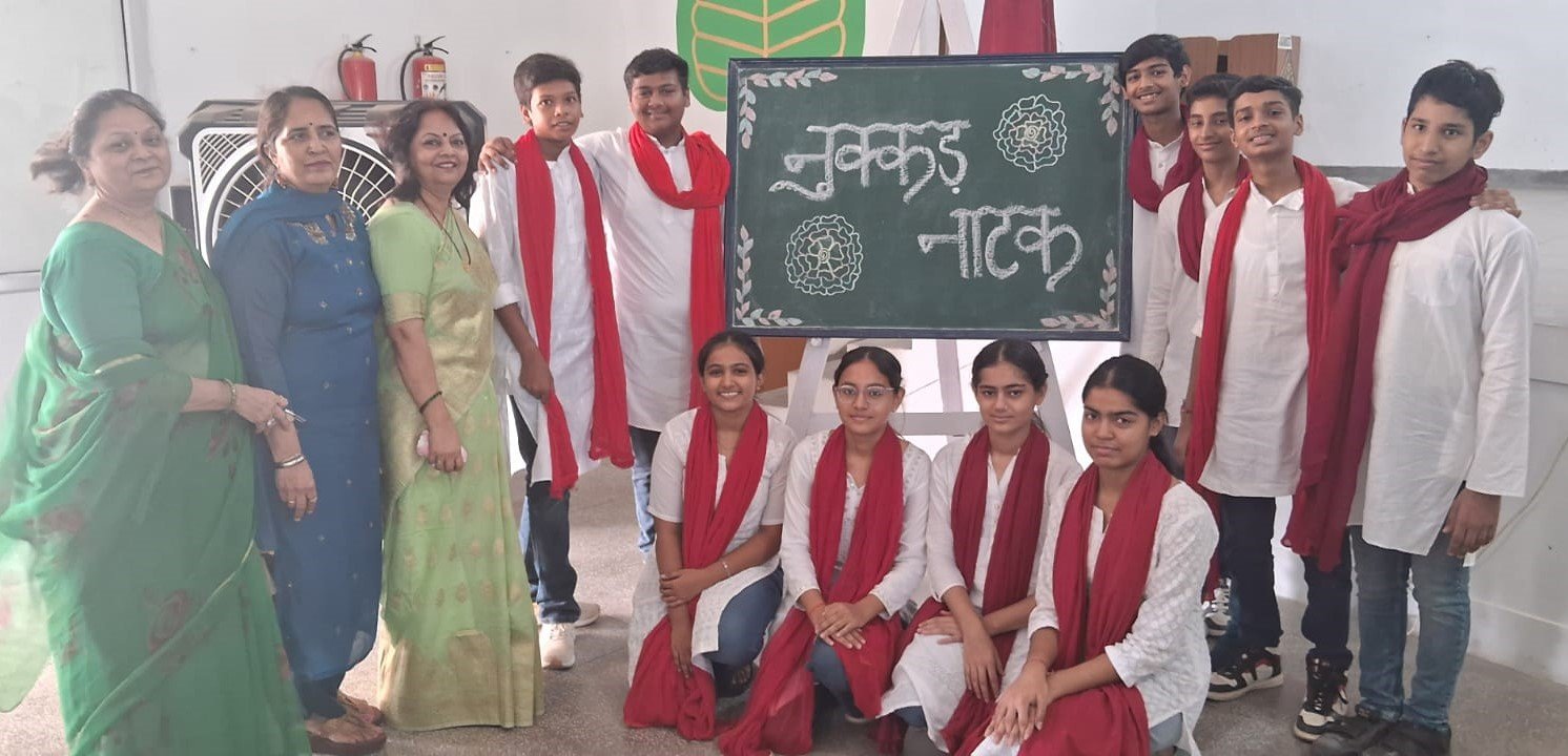 हिंदी दिवस के उपलक्ष्य में विद्यालय के कक्षा दसवीं के विद्यार्थियों द्वारा नुक्कड़ नाटक का आयोजन दिनांक 10.09.2025 को किया गया। श्रीमती शालिनी कुलश्रेष्ठ, श्री अरविन्द यादव जी निर्णय हेतु आमंत्रित थे।