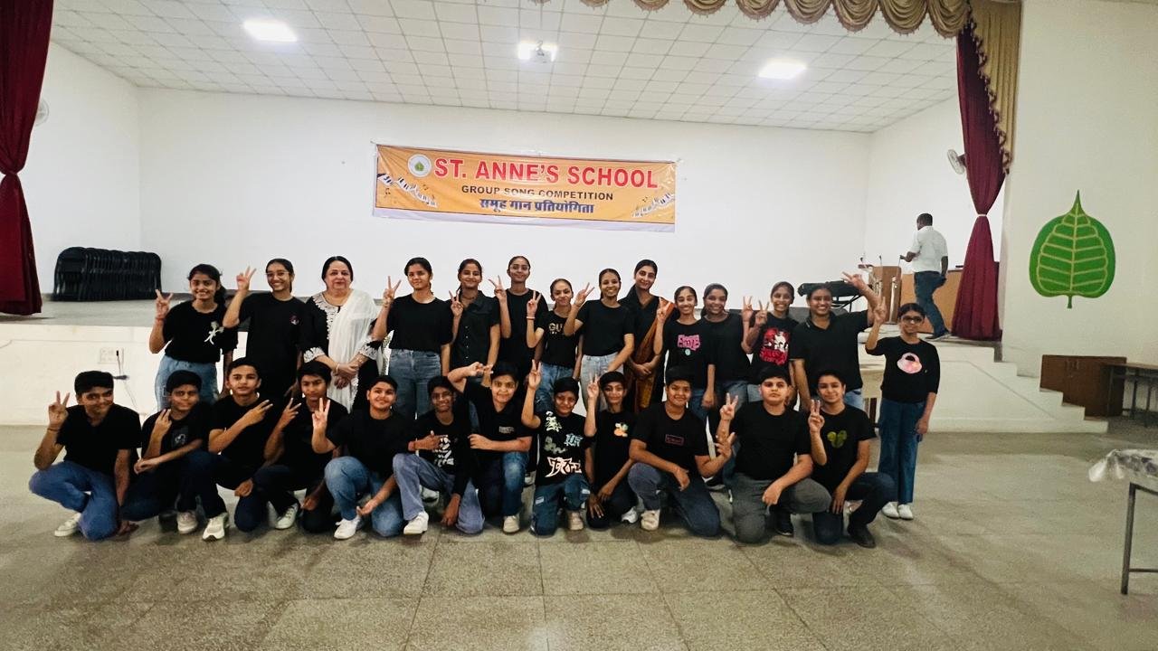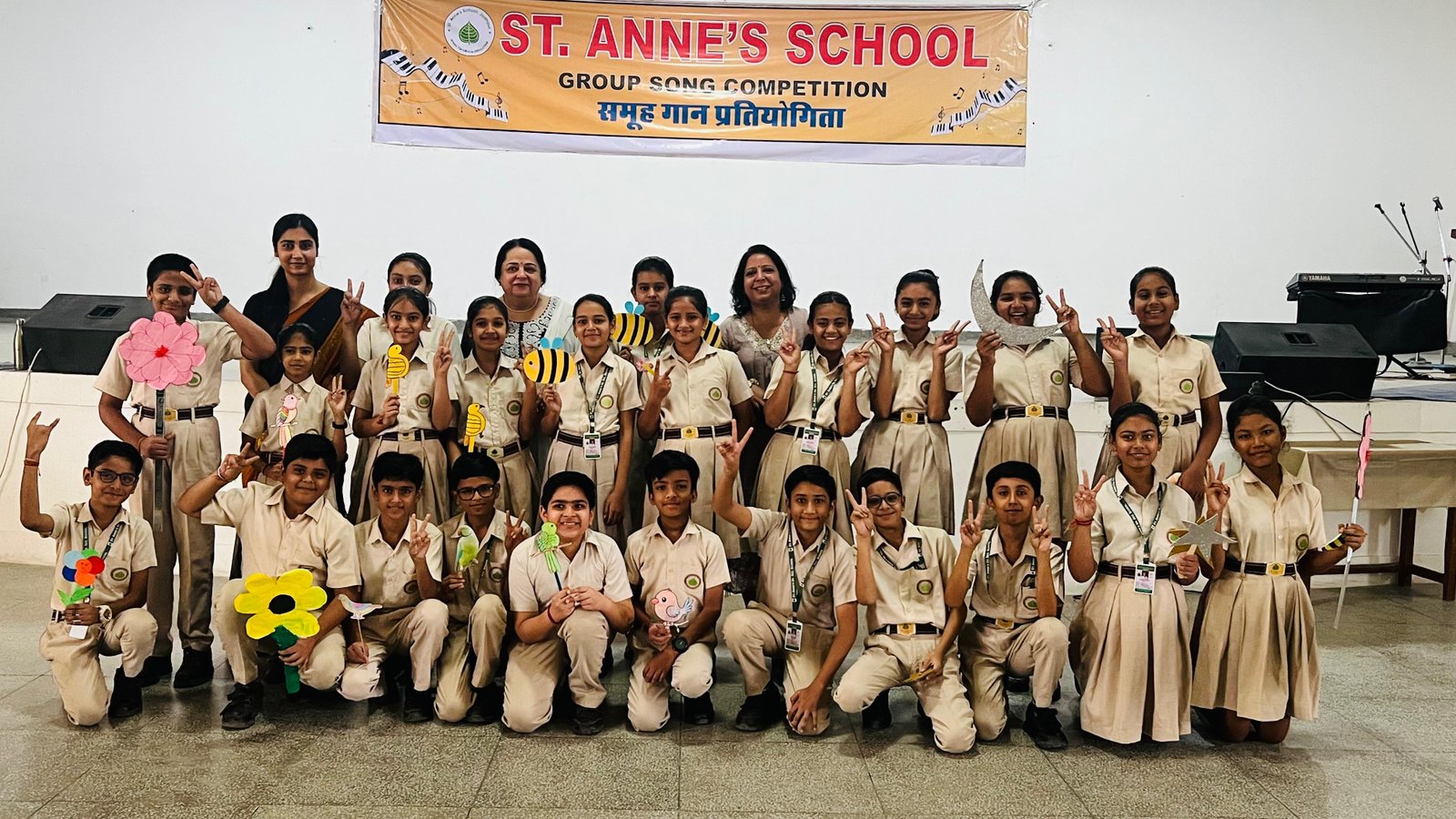 The English Group Song Competition held at St Anne’s Sr Sec School on 8th October 2025 was a melodious and vibrant event that filled the air with rhythm , harmony and joy. The competition aimed to bring out the hidden musical talents of students and celebrate the beauty of music as a universal language of emotions.