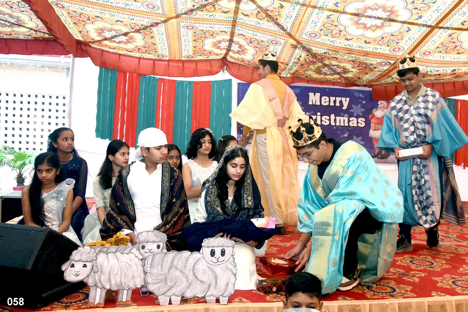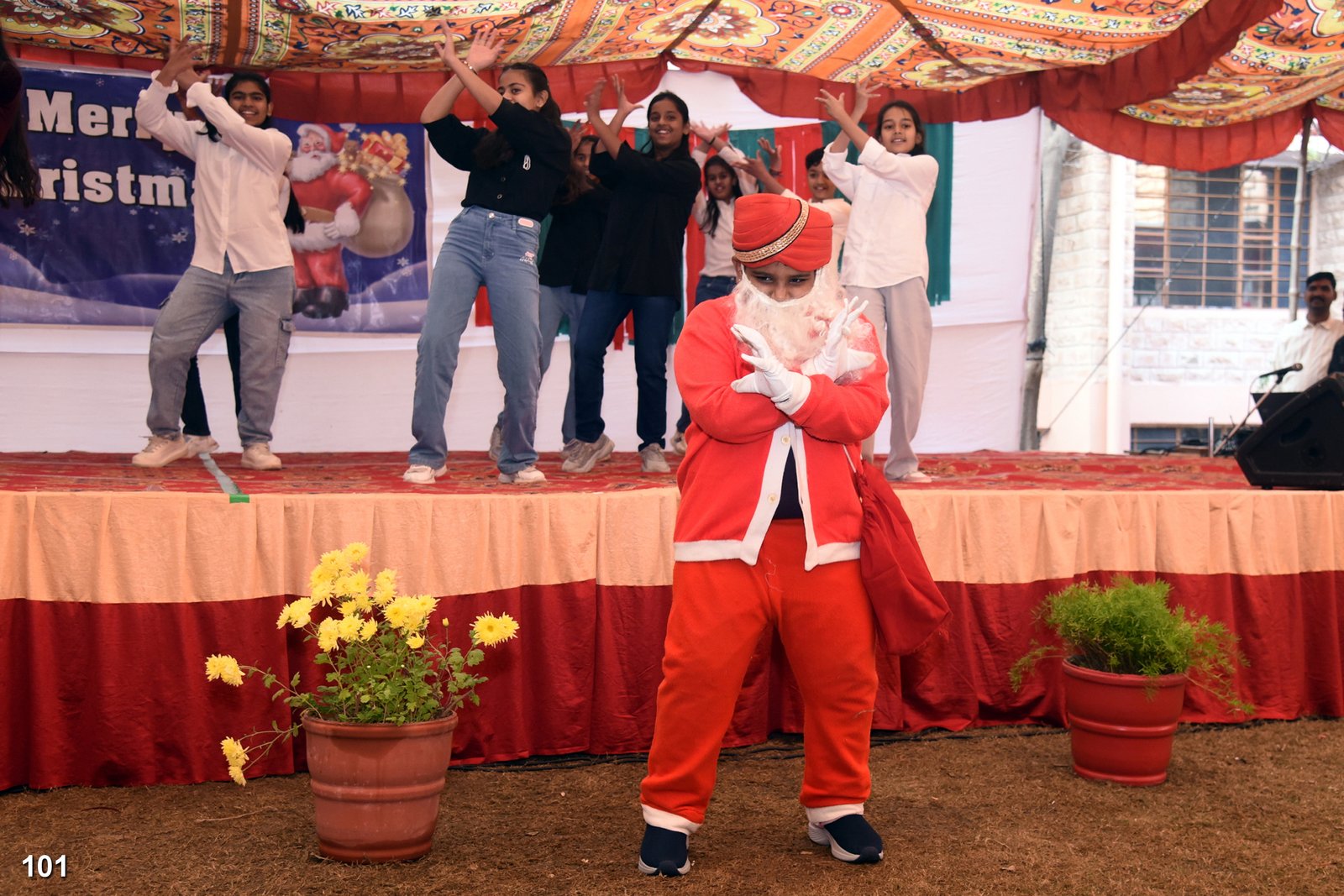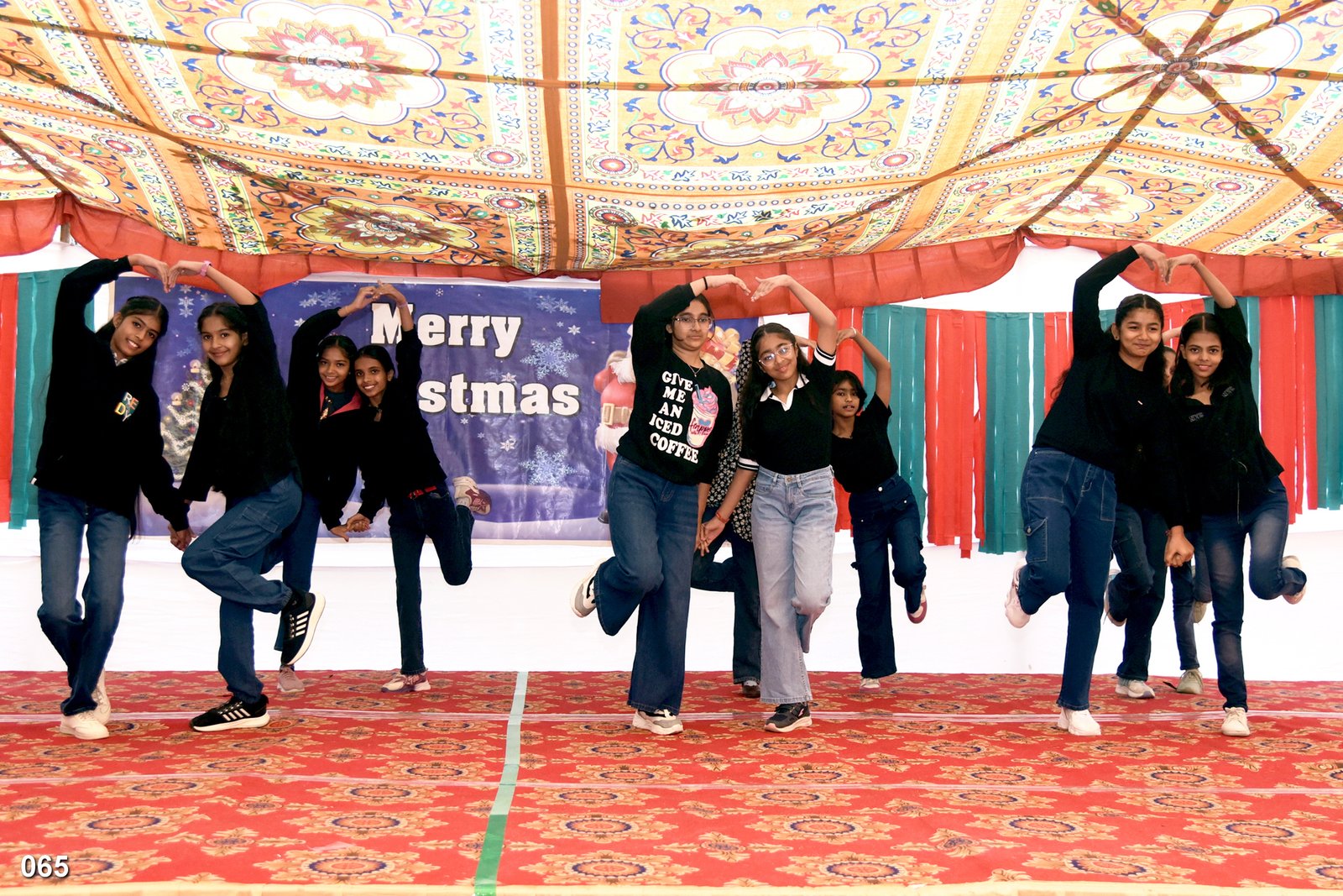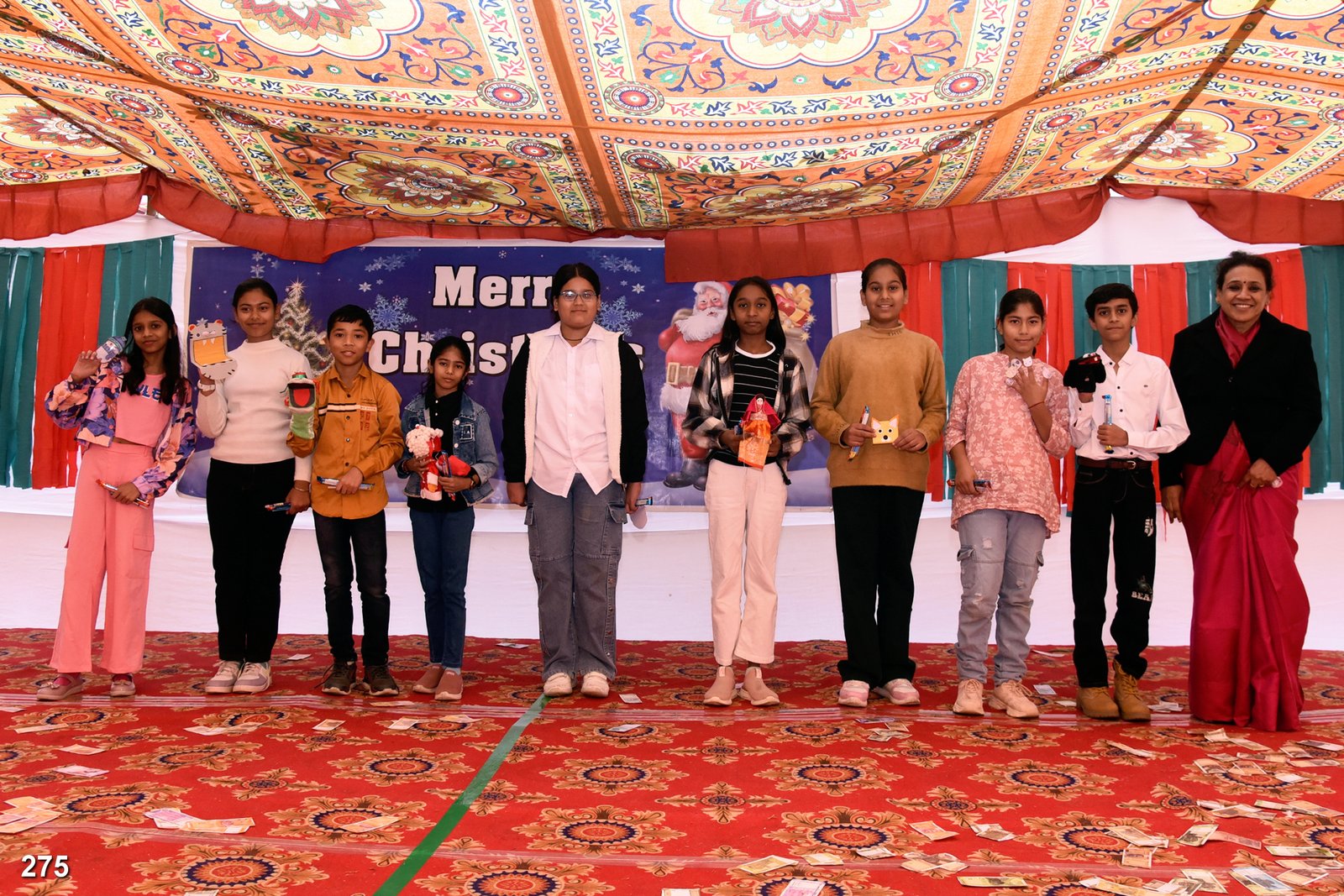 The celebrations commenced with a solemn prayer, invoking peace and gratitude. Soon after, the arrival of Santa Claus filled the air with excitement and delight, spreading smiles among the students. Santa distributed sweets and candies to the students of classes VI, VII, and VIII, adding to the festive joy. The melodious Christmas carols presented by the school choir further enhanced the spirit of the occasion. To highlight the true meaning of Christmas, a captivating tableau portraying the Nativity Scene was presented, leaving a deep impression on the audience. This was followed by a series of vibrant dance performances that showcased the talent and enthusiasm of the students celebrating the festival with great zeal and joy.