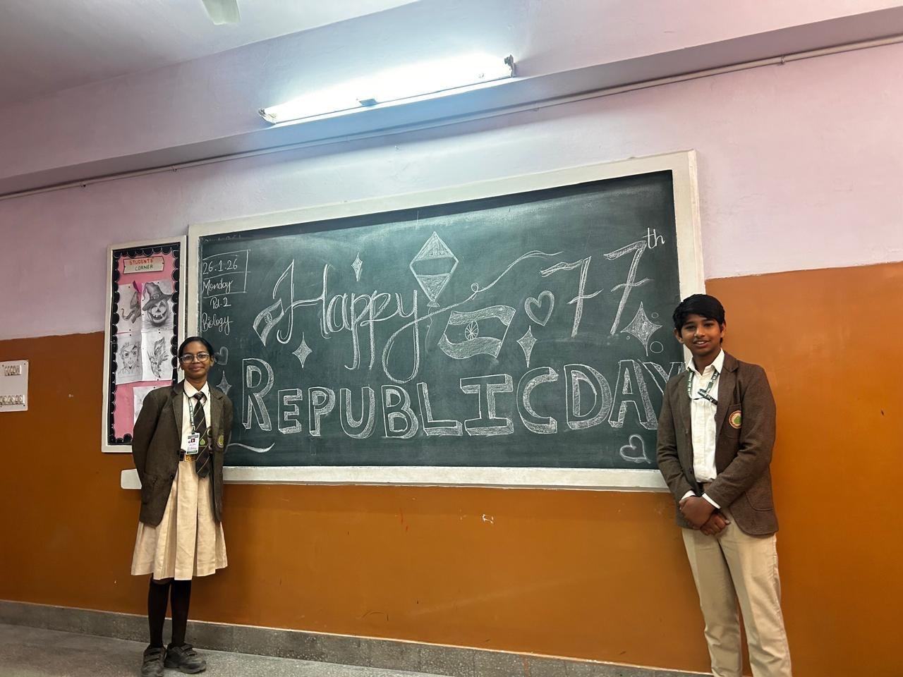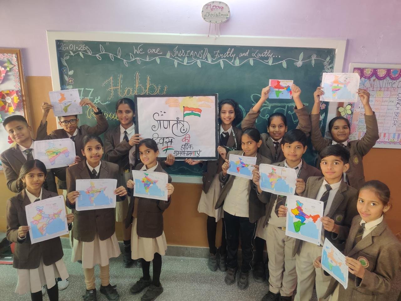 On January 26, 2026 our school hosted a vibrant Republic Day celebration to mark the 77th anniversary of India’s Constitution. The event commenced with the flag hosting, followed by stirring redemption of the national anthem. Students participated in different events like they were dressed as freedom fighters, prepared speeches, wrote slogans, poems, etc. depicting the constitutional values . As young citizens , this day reminds us of our duties to study well, respect our laws, and contribute to a better India. It inspires us to be responsible, united, and proud of our heritage.