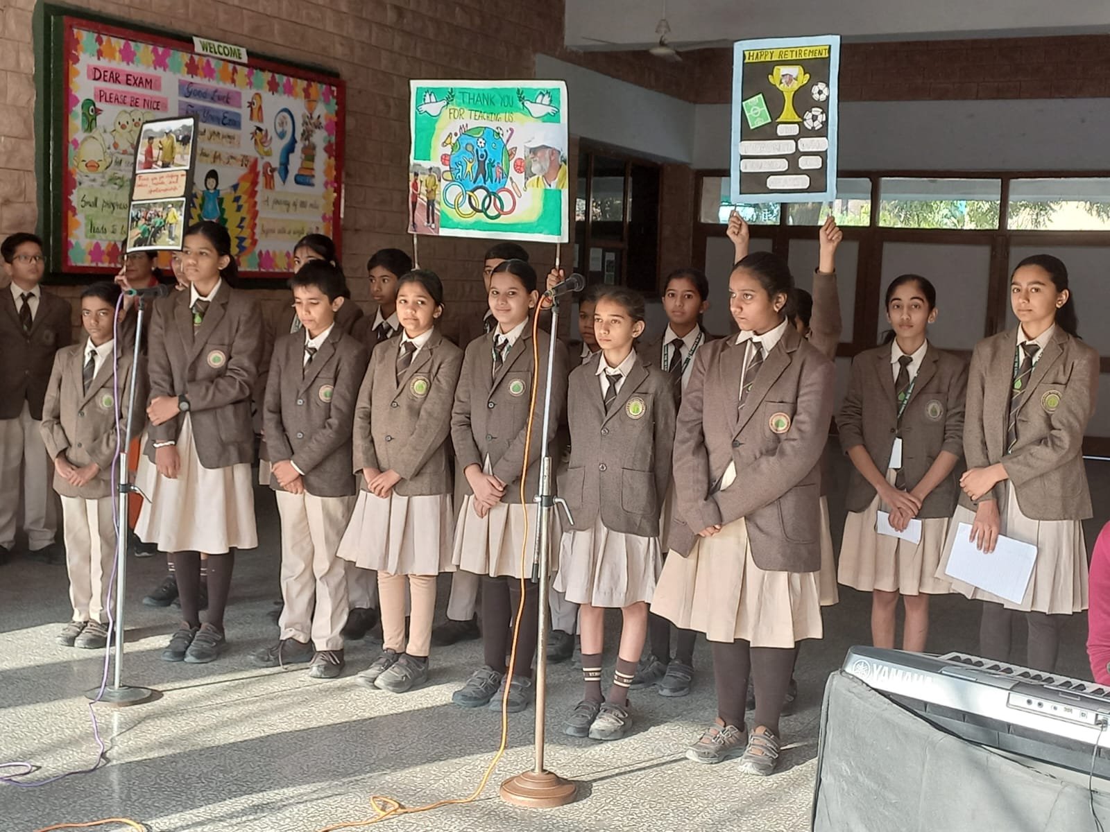 The school organized a heartfelt farewell assembly to bid goodbye to our beloved Sports Teacher, Mr. Vijay Sharma, who has been an inspiring mentor and guide to all students.