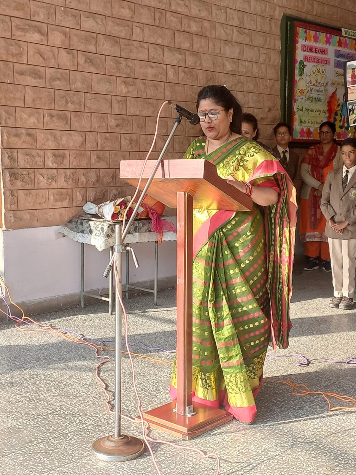 Our esteemed Vice -Principal ma'am addressed the gathering and appreciated Vijay Sir’s dedication, discipline, and remarkable contribution to sports and fitness in the school.