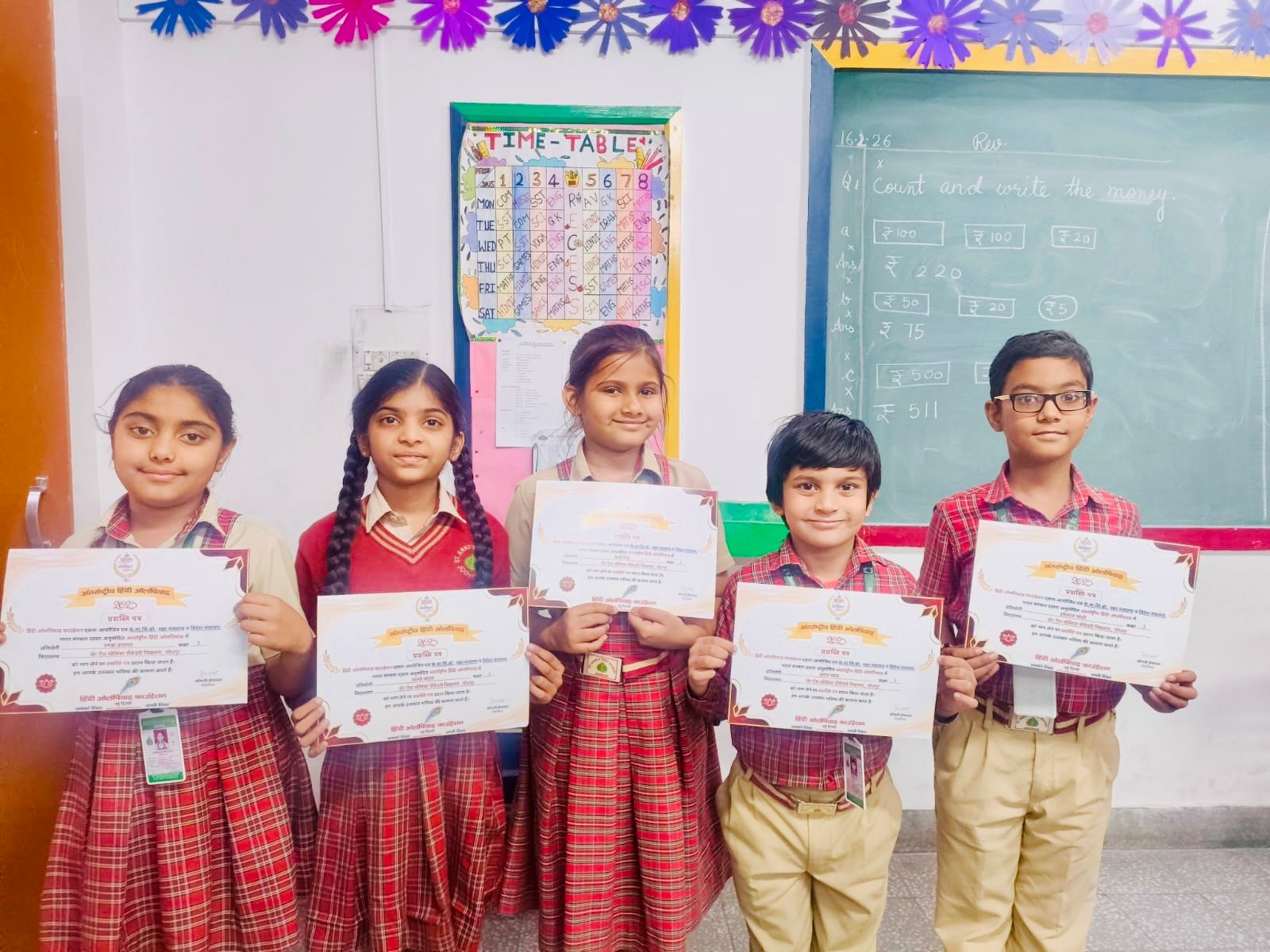 हिंदी भाषा के महत्त्व को ध्यान में रखकर विद्यालय में हिंदी ओलंपियाड फाउंडेशन द्वारा कक्षा 1 से 5वीं तक के विद्यार्थियों के लिए हिंदी ओलंपियाड आयोजित किया गया। अपनी भाषा ज्ञान का सर्वश्रेष्ठ प्रदर्शन दिखाने हेतु कई विद्यार्थियों ने इसमें भाग लिया भाग लिया। फाउंडेशन द्वारा विद्यार्थियों को स्वर्ण, रजत, कांस्य पदक एवं प्रशास्त्री पत्र दिए गए।