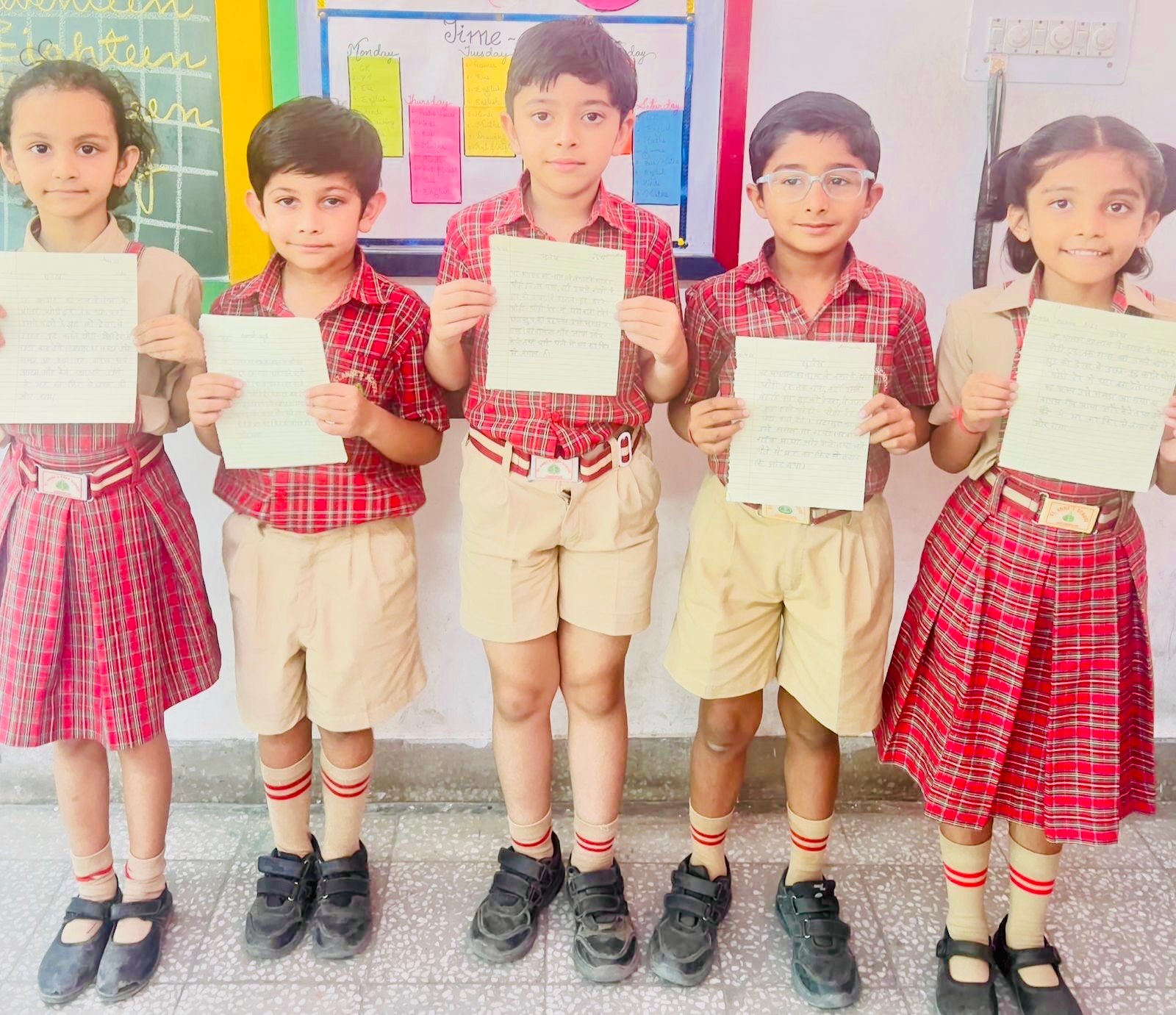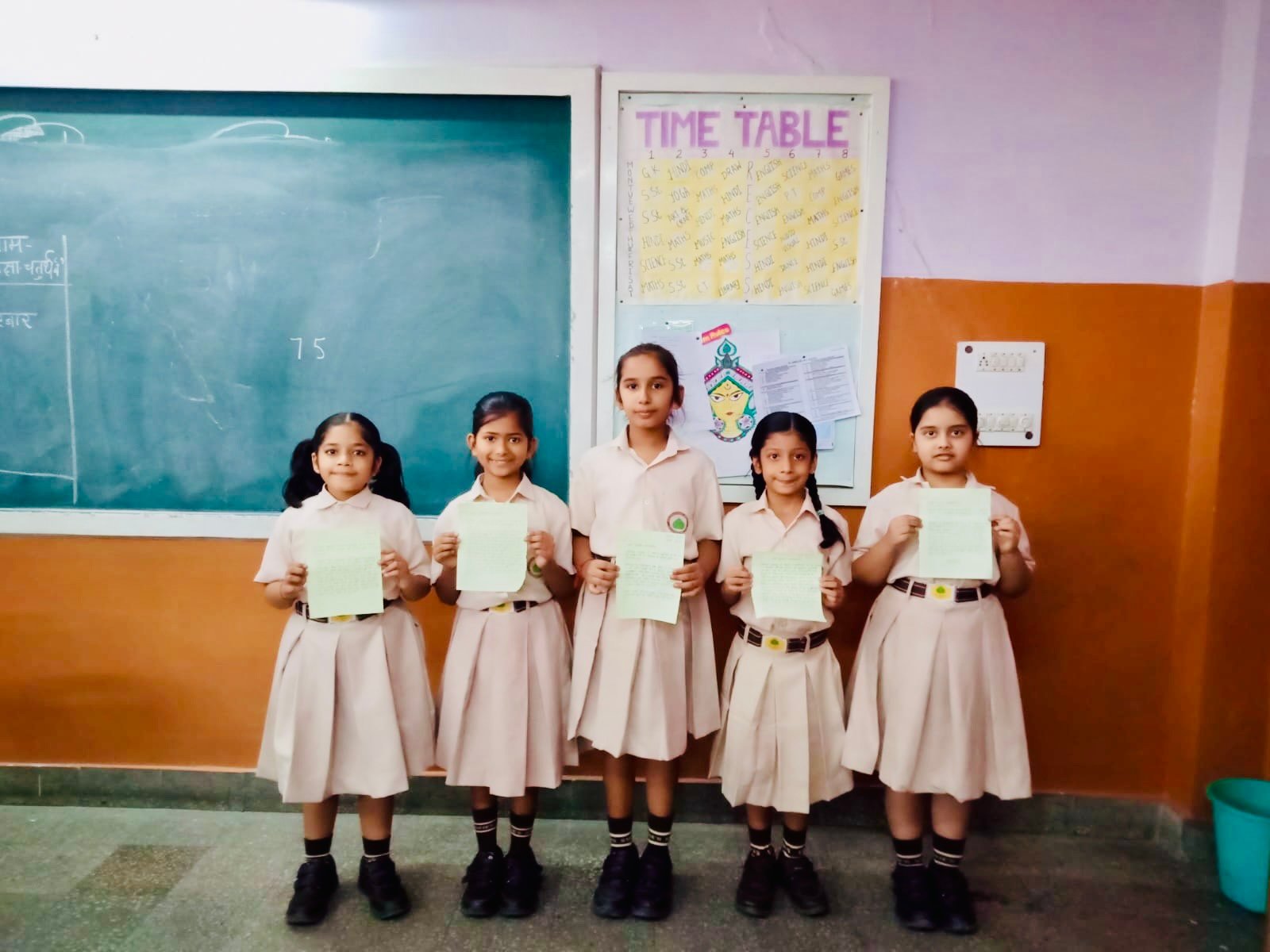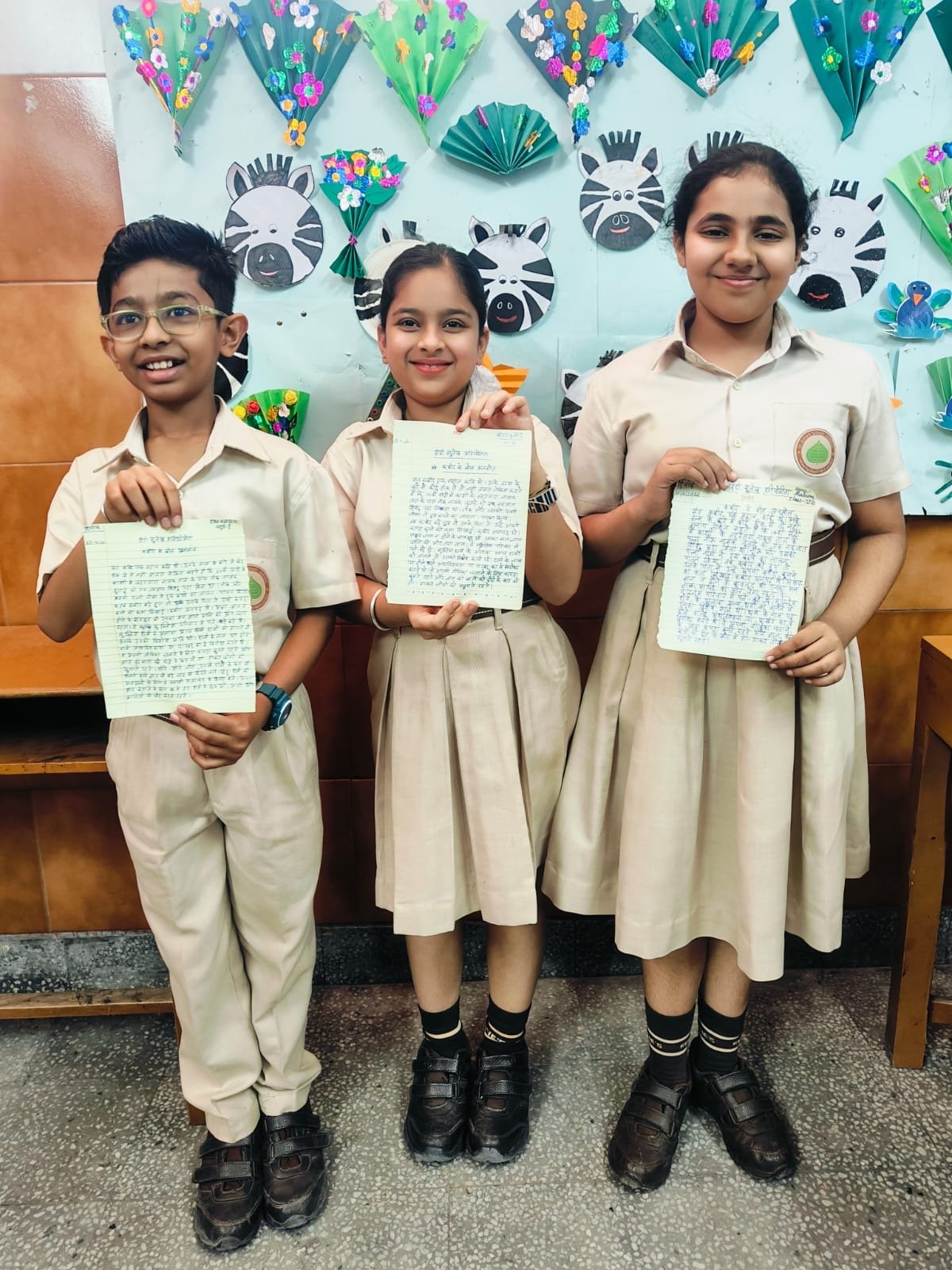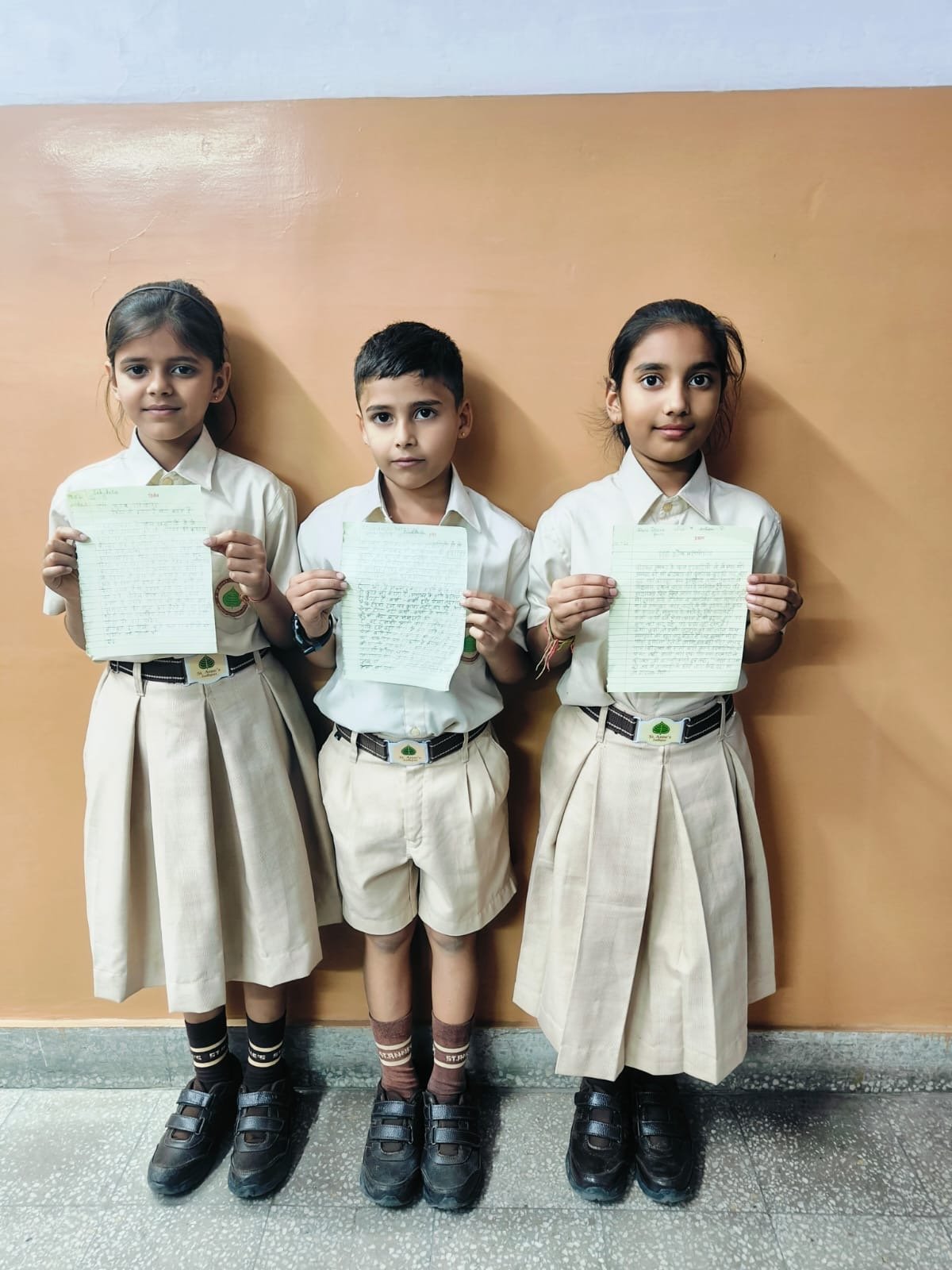 हमारे विद्यालय में हिंदी सुलेख प्रतियोगिता का आयोजन _10 अप्रैल 2026_कक्षा प्रथम से कक्षा पंचम तक के विद्यार्थियों के लिए किया गया। इस प्रतियोगिता में छात्रों ने उत्सुकता से भाग लिया। इस प्रतियोगिता में लेखन क्षमता का परीक्षण किया जाता है। इसका उद्देश्य विद्यार्थियों की शुद्ध लेखन, वर्तनी और वाक्य रचना की क्षमता का आकलन करना होता है। यह प्रतियोगिता विद्यार्थियों की भाषा के प्रति रुचि बढ़ाने और लेखन कौशल में सुधार करने में मदद करती है।