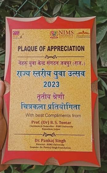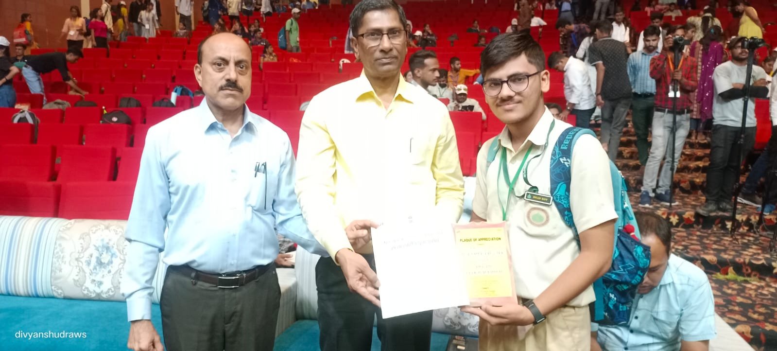 Our Head Boy, Divyanshu Choudhary, illustrated his proficiency in Art by securing the Third Position in the Painting Contest, 'Yuva Utsav 2023 : Amrit Kaal Ke Panch Pran', organised by the Nehru Yuva Kendra Sangathan.